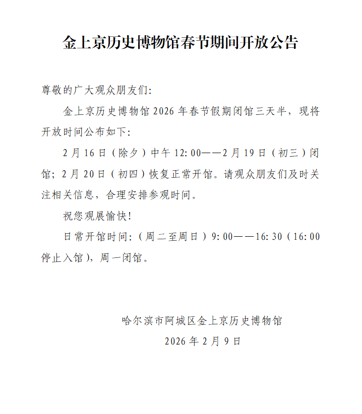 信息来源:哈尔滨市阿城区金上京历史博物馆 2026-2-9 10:51:04